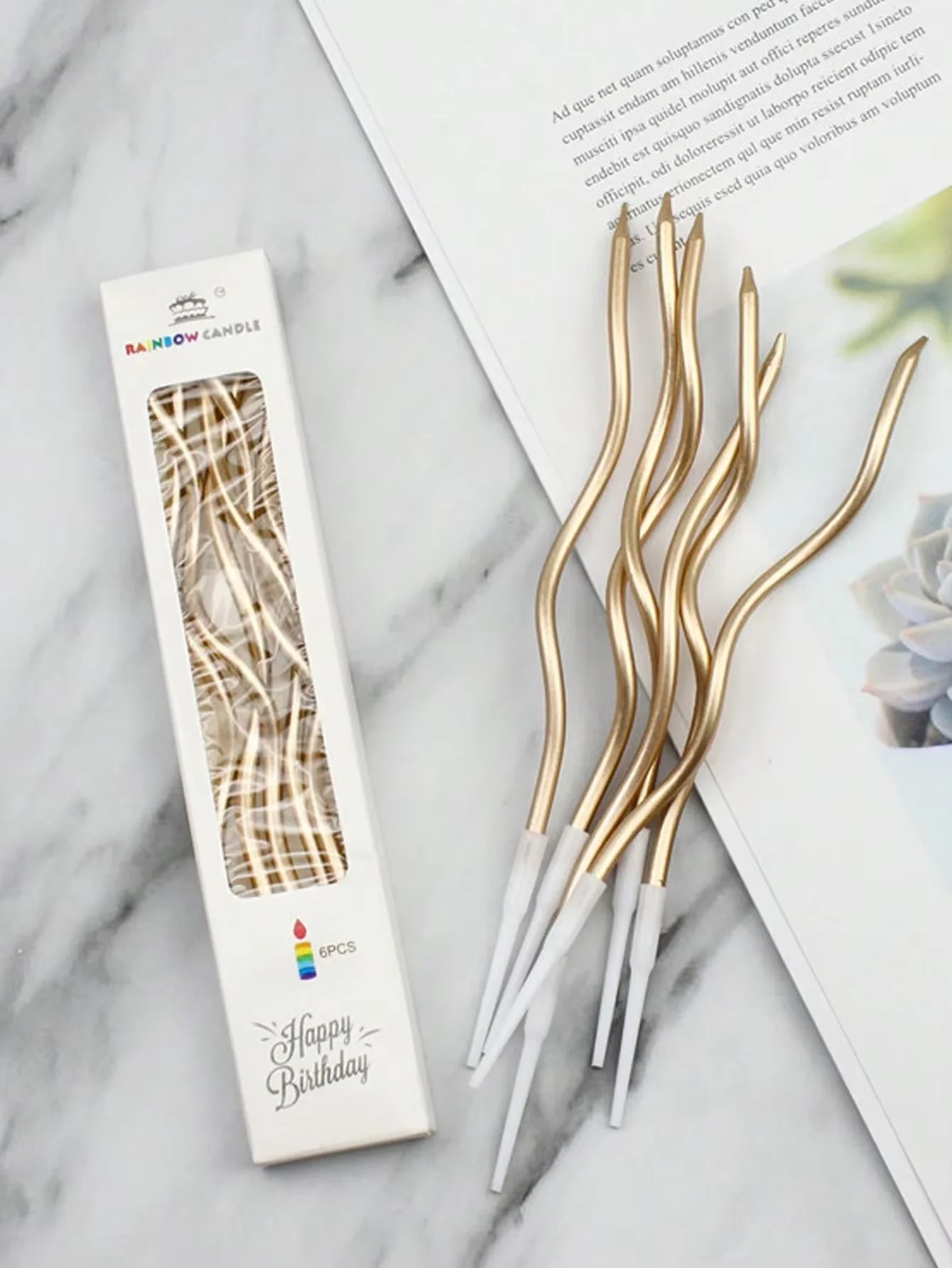 6pcs/lot Curve Birthday Candles Golden Thread Slender Rod Candle for Party Cake Decoration Pencil Candles