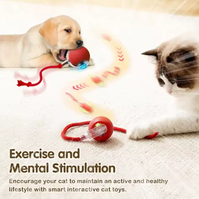 Interactive Cat Toys Bouncy Ball with Tail USB Rechargeable Intelligent Cat Accessories Electric Automatic Smart Mouse for Cat